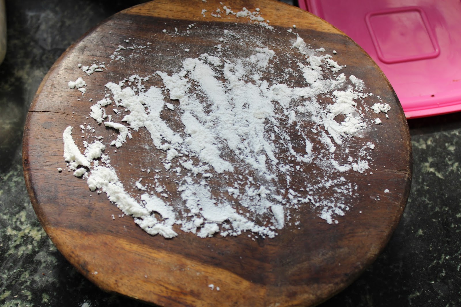 - Place the dough over the dusted space and roll it to thick circle ( like pooris).